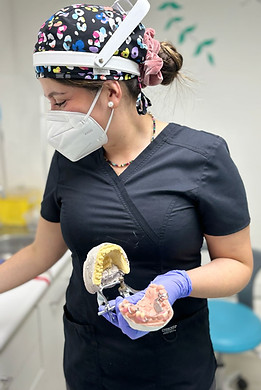 Por ejemplo: Prótesis removibles, coronas, incrustaciones, carillas, restauraciones de resina estética, etc.